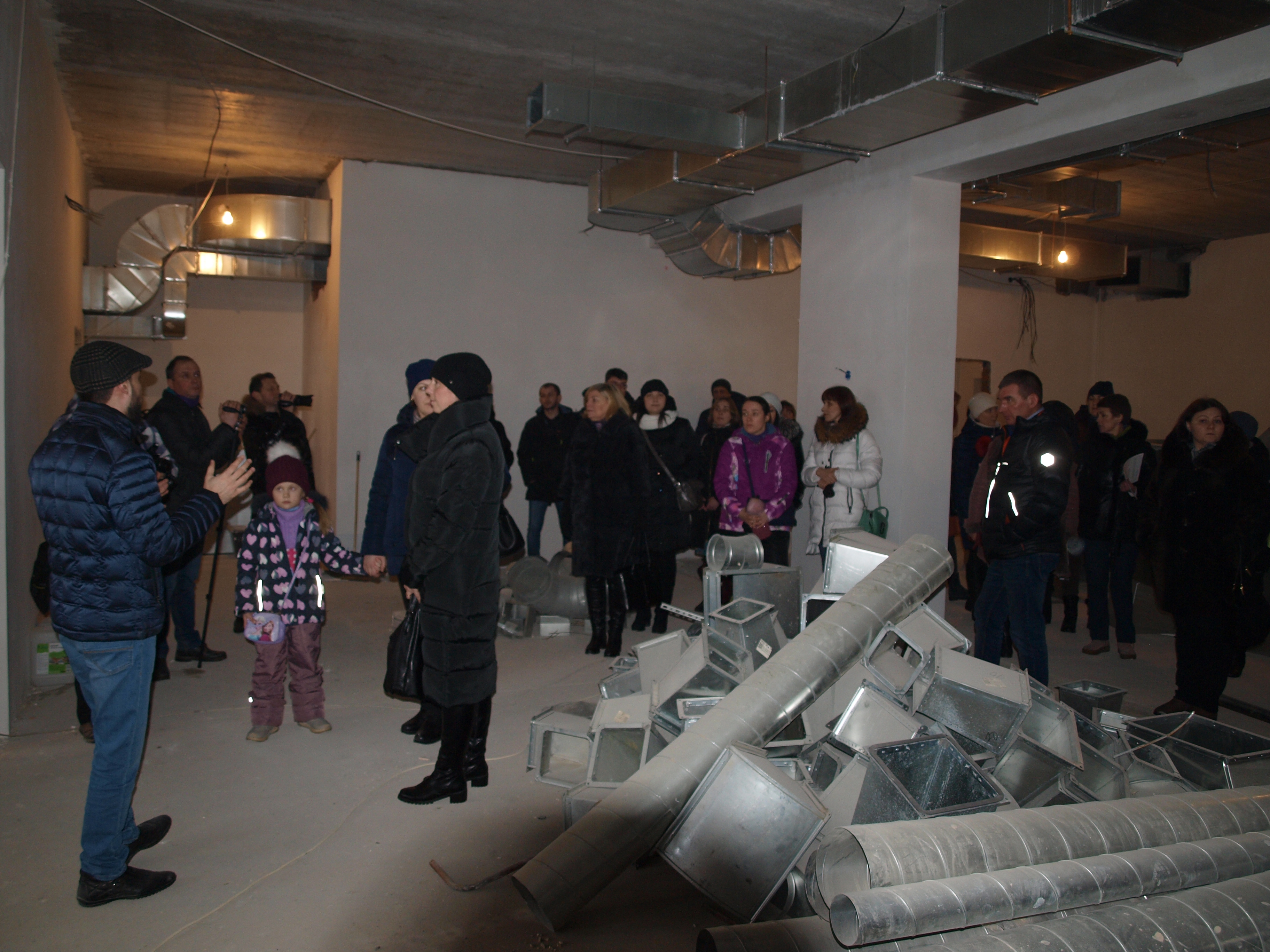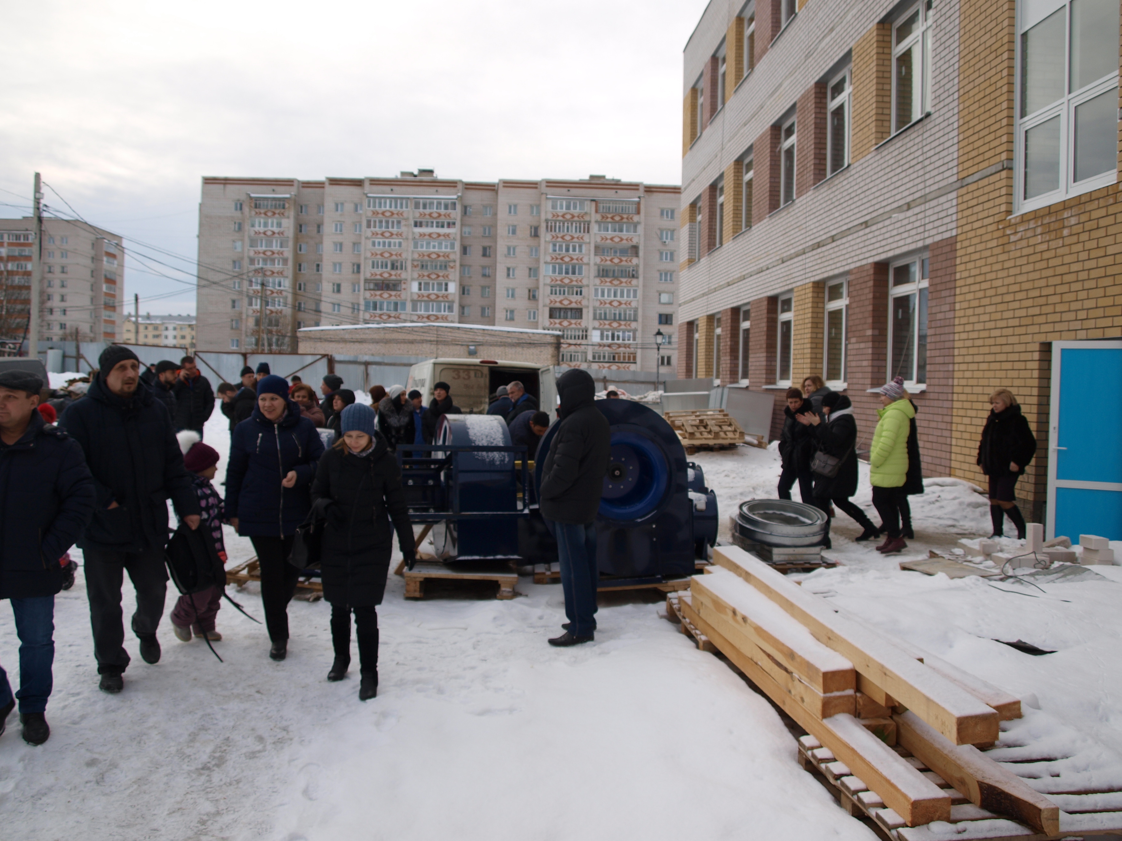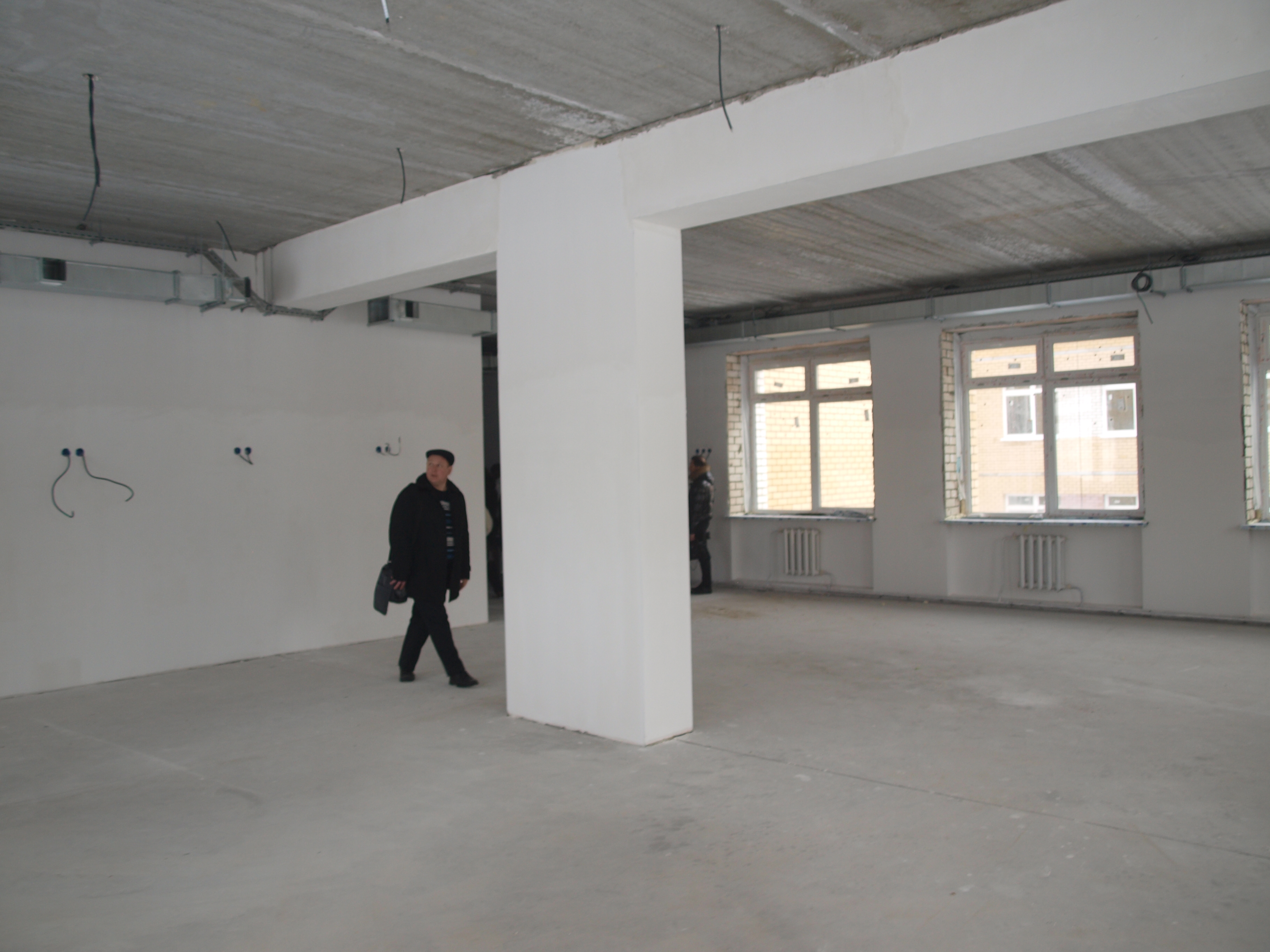 Перед входом в новое здание директор школы №4 О.А. Захарова объяснила собравшимся, что здесь будут 2 спортивных зала, 4 кабинета мастерских, большой актовый зал, пищеблок со столовой, библиотека с медиацентром и ресурсным центром. А вот учебных кабинетов в нём не так уж много. Поэтому лучшим вариантом было бы размещение здесь средних и старших классов (с 5-го по 11-й). Начальное звено могло бы продолжить обучение в старом здании школы №4.