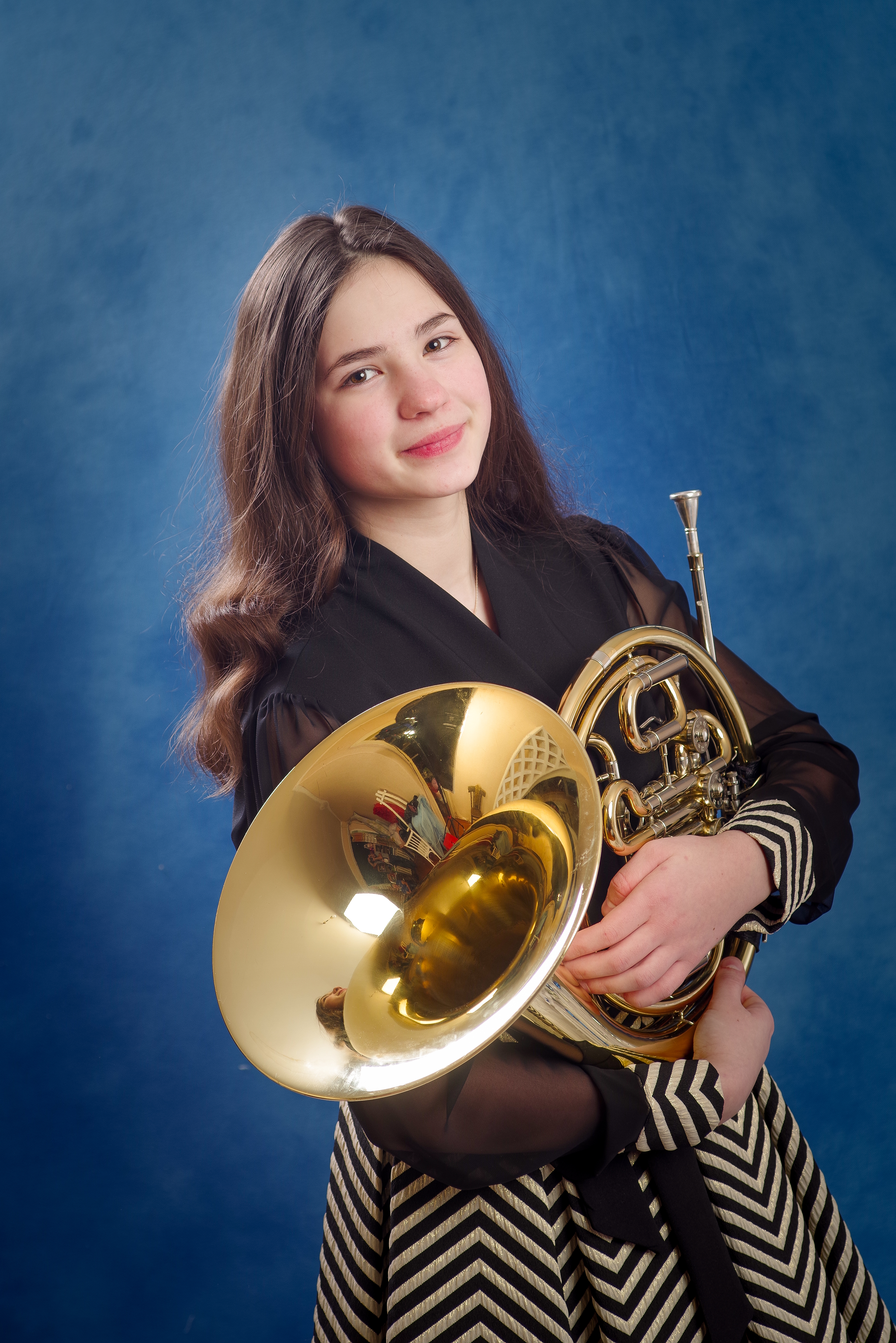Сегодня Дмитрию 14 лет. Он обучается по дополнительной предпрофессиональной общеобразовательной программе в области музыкального искусства «Духовые и ударные инструменты» в классе преподавателя Павла Вячеславовича Мурашова. И уже сейчас можно сказать, что это талантливый, целеустремленный и очень перспективный юный музыкант, который неоднократно достойно защищал честь родной школы искусств на музыкальных конкурсах всероссийского и международного уровней. На его счету – множество наград и званий. В 2017 году Дмитрий стал обладателем званий «Лауреат III премии» VI Всероссийского открытого конкурса юных исполнителей на духовых и ударных инструментах «Серебряные трубы» имени В. Блажевича (г. Москва), «Лауреат I степени» VIII Всероссийского конкурса молодых исполнителей на духовых и ударных инструментах «Звуки надежды» (г. Нижний Новгород) и обладателем «Гран-при» Московского областного открытого конкурса сольного исполнения на медных духовых инструментах «Рождественские фанфары».