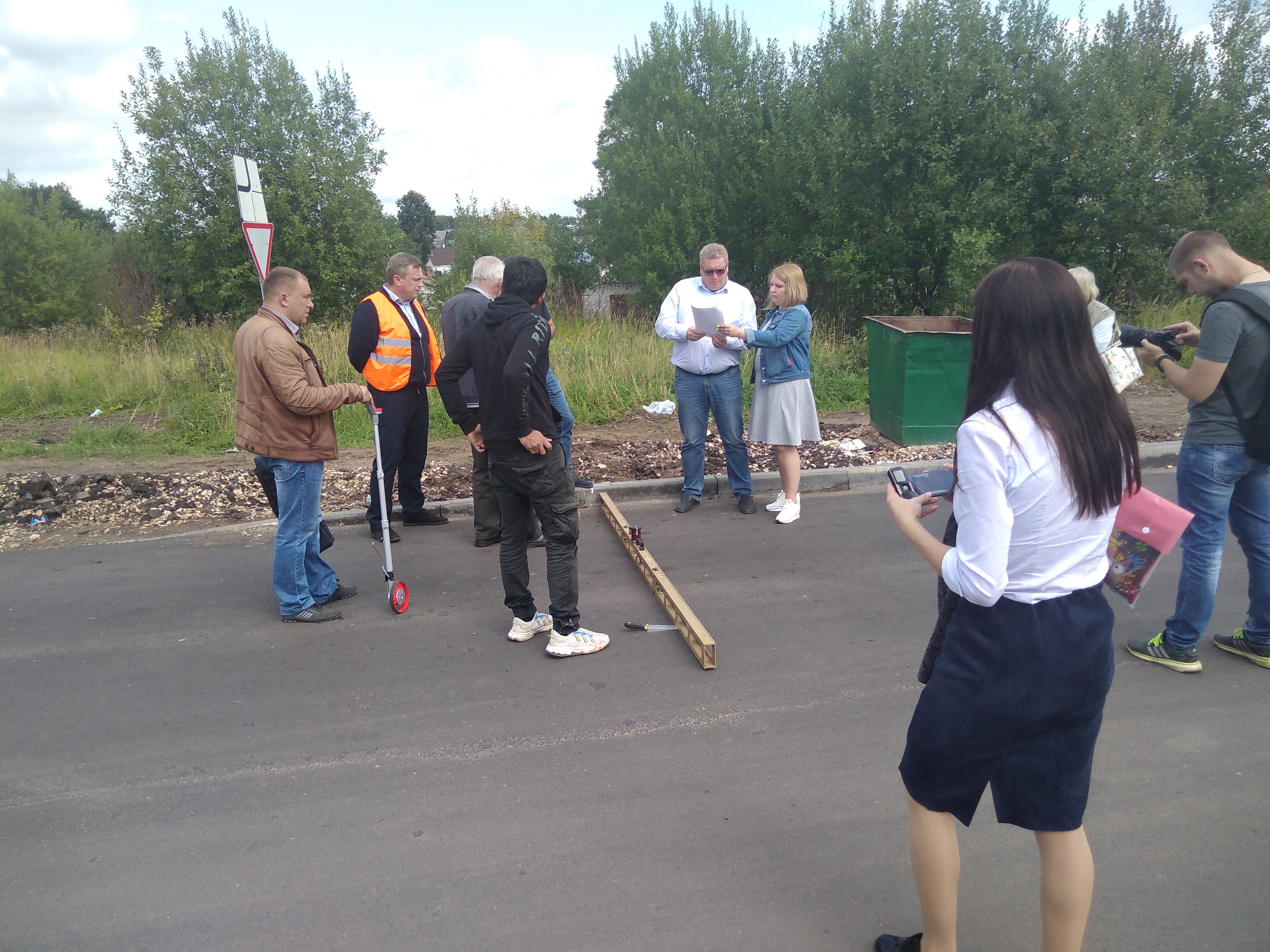 Во время совещания были произведены замеры по всей длине дороги, специалисты оценивали качество и ровность покрытия, состояние прилежащих к дороге территорий: съездов, бордюров, тротуара, автобусной остановки и ливневых стоков. Каждый из присутствующих высказал свою точку зрения.