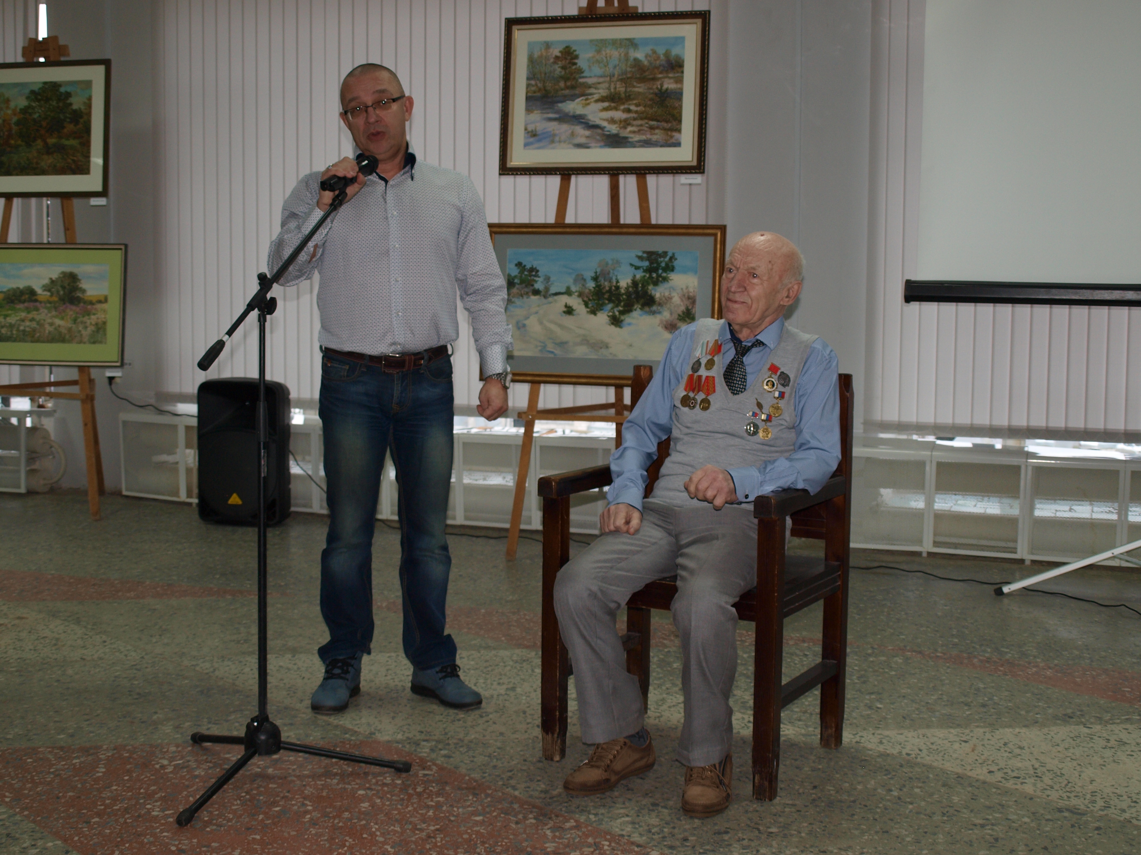 Выяснилось, что в Кольчугино живут ещё и родственники самого художника. Среди них Владимир Степанович Куприянов, который вместе с внуком пришёл поздравить Шамаева с открытием выставки.