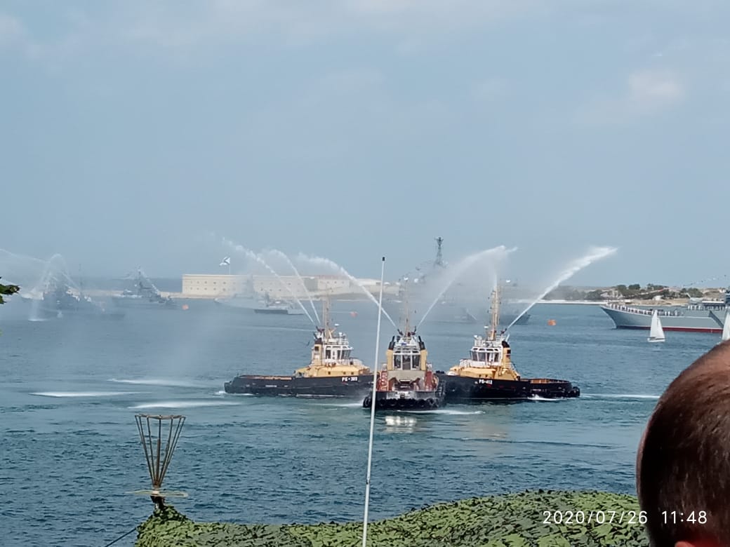 Владимирская делегация наблюдала парад непосредственно с КПУР – командного пункта управления рейдами, изнутри, они слышали все команды, видели, как четко, быстро, грамотно управляется весь процесс. В параде и военно-спортивном празднике приняли участие более 30 боевых кораблей, подводных лодок и катеров, 14 вспомогательных судов, около 30 летательных аппаратов и более 50 единиц техники армейского корпуса Черноморского флота.