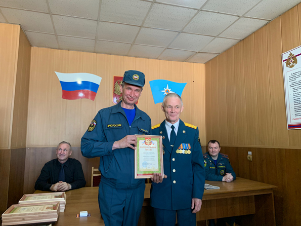 Особо чествовали «патриарха пожарной охраны», проработавшего здесь не один десяток лет, Вадима Федоровича Ерёмина. За бесценный вклад в развитие пожарной охраны Кольчугинского района ему были вручены Благодарственное письмо Главного Управления МЧС России по Владимирской области, Почетная грамота администрации и районного Совета народных депутатов, а также медаль «За службу в милиции»: пожарная часть долгое время входила в состав органов внутренних дел.