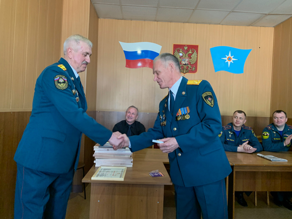 Министерская награда – Знак «Ветеран МЧС России. За особые заслуги» – была вручена В.И. Фадееву – «главному виновнику торжества, потому что у любого дела должен быть зачинщик». Сам Владимир Иванович, принимая высокую награду, скромно отметил: «Считаю, что этот знак – наша общая заслуга».