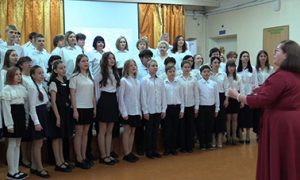 В том же патриотическом настроении преданности и верности своей учительской профессии прозвучал гимн средней школы № 7. Слова гимна написал настоятель Свято-Введенского храма с. Флорищи отец Вячеслав, он и сам поёт в нашем хоре.